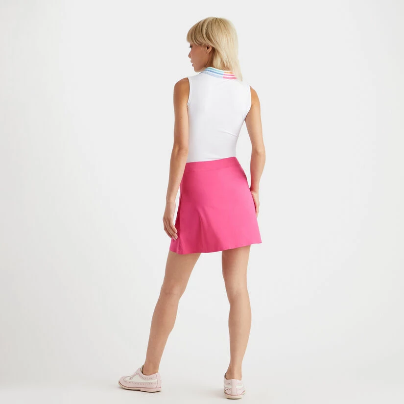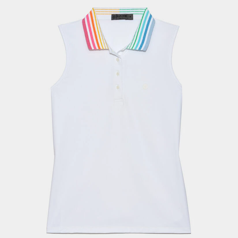 THE COLOUR BLEND SLEEVELESS POLO IS DESIGNED IN SILKY TECH NYLON WITH MOISTURE WICKING PROPERTIES, SO YOU’LL EXPERIENCE BREATHABLE ALL DAY COMFORT. PLUS, IT FEATURES A MULTICOLOURED PLEATED COLLAR FOR SUPERIOR STYLE. G4LS23K860B