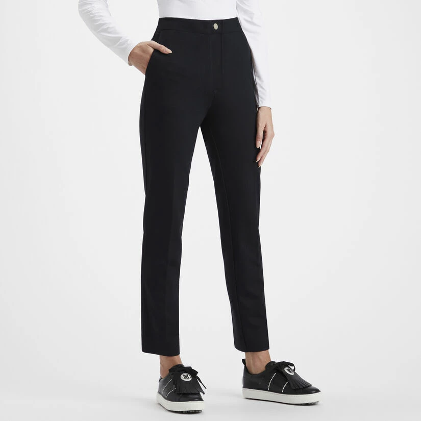 DESIGNED WITH INCREDIBLY SOFT AND STRETCHY FABRIC FOR GROUNDBREAKING MOBILITY AND ALL DAY COMFORT. THE DOUBLE KNIT CIGARETTE LEG HIGH RISE STRETCH TROUSER FEATURES A TAILORED FIT FOR A MORE MODERN LOOK. G4LF22B96