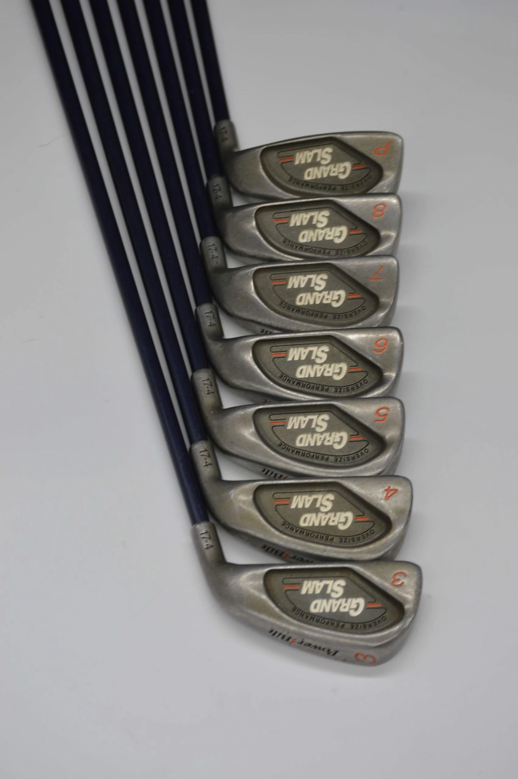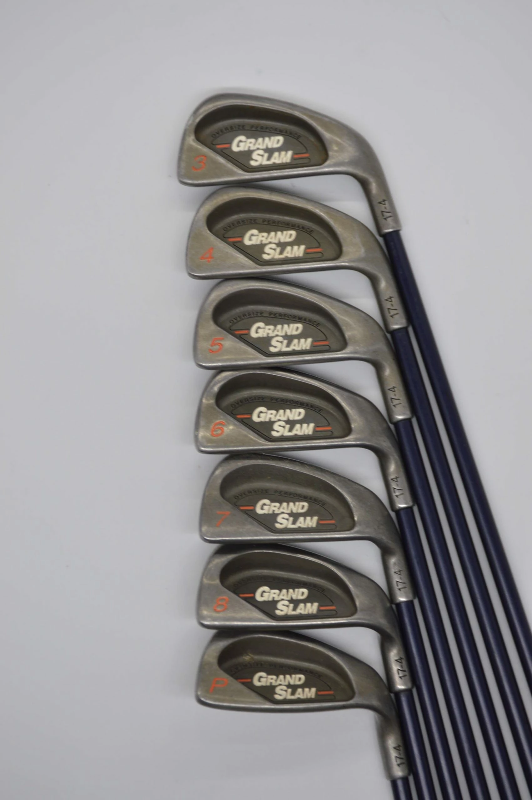 Set includes 4-8; PW. Irons are in great condition (light wear, with plenty of life left). Shafts are stock Grand Slam in R Flex with Golf Pride V-2000 grips.