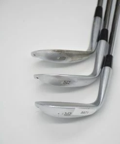 Set includes 50, 54, 60 Degree wedges. Bounces are 6, 10, 5 Degrees. Wedges are in good condition (some cosmetic wear, but nothing that affects performance in any way). Shafts are True Temper Dynamic Gold XP in Wedge Flex with Lamkin R.E.L. grips.