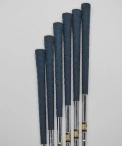 Set includes 3-6, 8-9. Irons are in good condition with light wear to club head and face. Shafts are True Temper Palm Springs stock in S flex with USGrips grips.