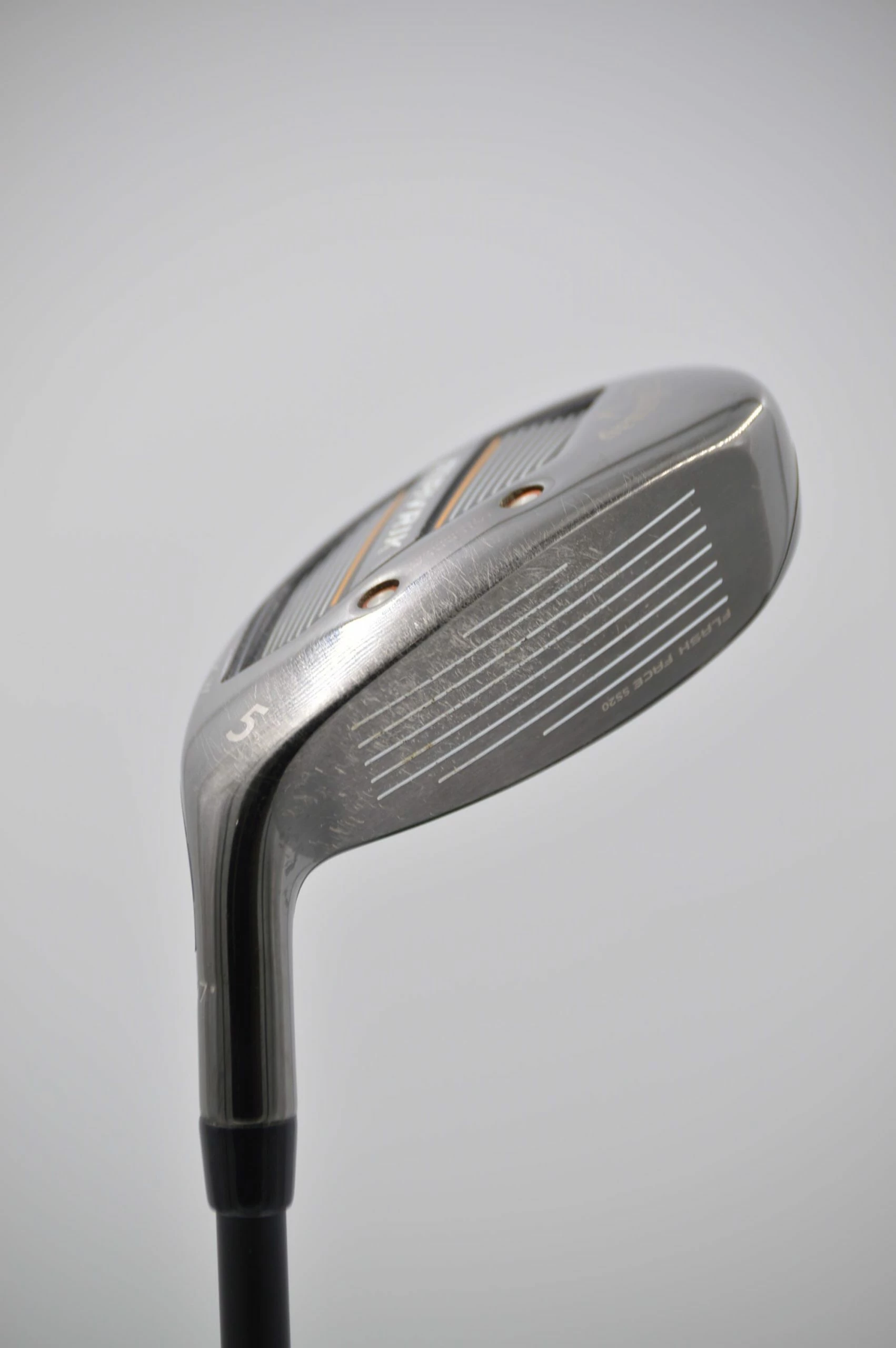 Hybrid is in good condition with light wear to club head and face. Shaft is a Mamiya Helium 50 gram in W flex with a Golf Pride grip.