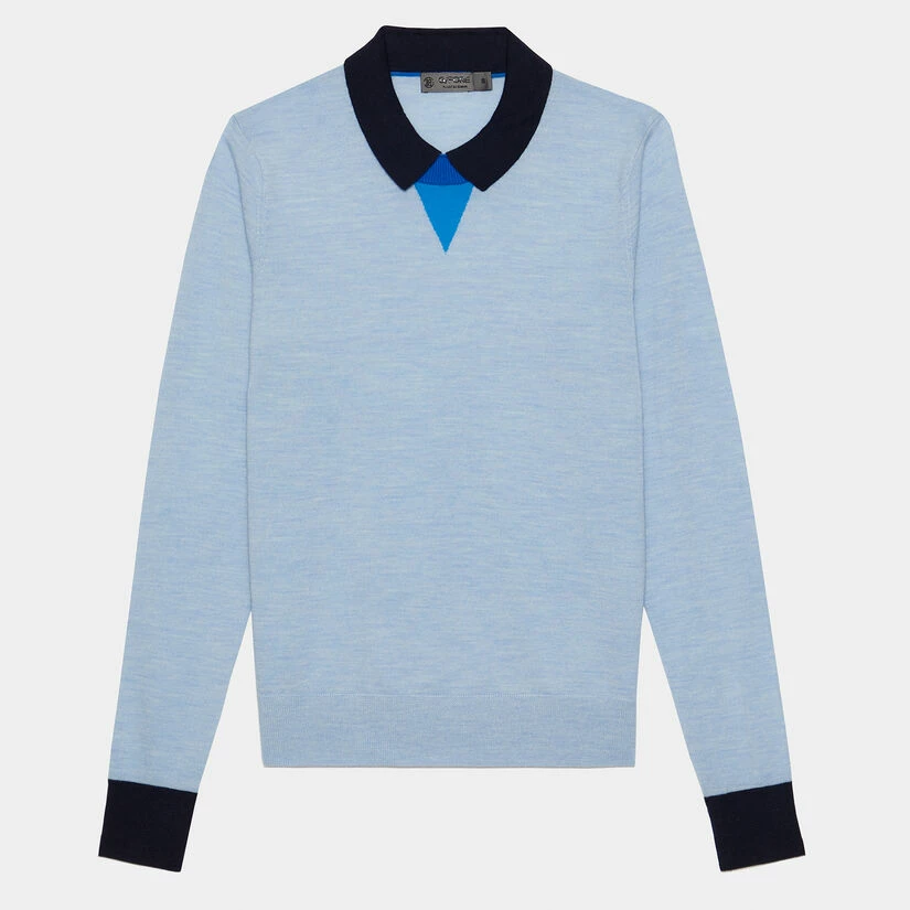MADE WITH COZY ALL-SEASON MERINO WOOL, THIS STYLE IS A STAND OUT YEAR ROUND. DESIGNED WITH UNIQUE CONTRAST DETAILS AROUND THE COLLAR AND SLEEVES TO GIVE THE APPEARANCE OF SOPHISTICATED LAYERING SO YOU CAN ELEVATE YOUR LOOK WITH EASE. G4LS23S604