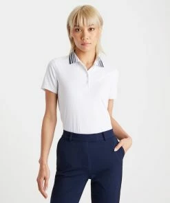 THE PLEATED COLLAR SILKY TECH NYLON POLO IS DESIGNED WITH SUPER SOFT, LIGHTWEIGHT, AND STRETCHY FABRIC, PLUS MOISTURE WICKING PROPERTIES, SO YOU’LL EXPERIENCE ALL DAY COMFORT ON THE COURSE. THIS STYLE IS DESIGNED WITH A STRIPED JACQUARD FLAT KNIT COLLAR FOR A TOUCH OF LUXE. G4LS23K866
