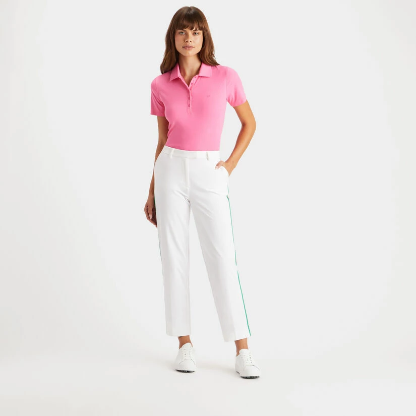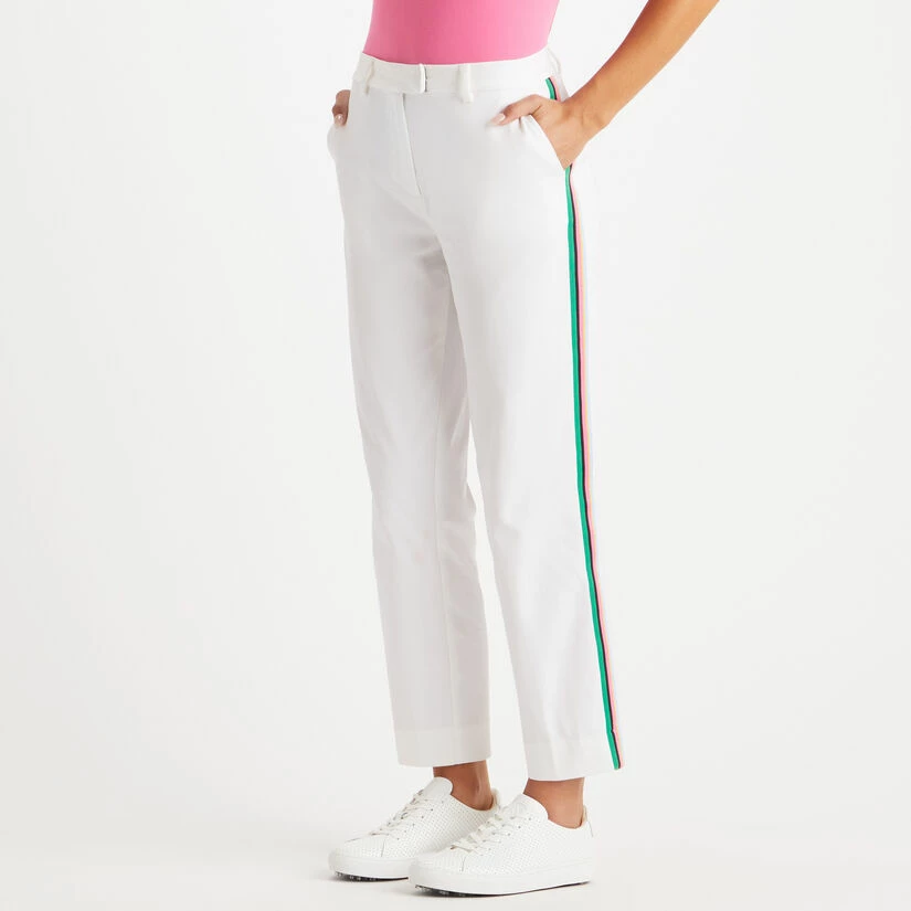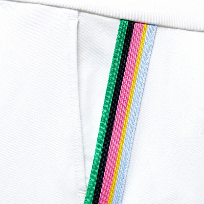 OUR FAVOURITE FABRIC FOR TROUSERS AND SHORTS ALIKE, THIS STRETCH TWILL FABRIC IS INCREDIBLY COMFORTABLE FOR UNPARALLELED STRETCH AND MOVEMENT. PERFECT FOR DAYS ON THE COURSE OR DREAMING ABOUT HITTING THE LINKS. FEATURING A MULTI-COLOURED STRIPE DOWN THE SIDE FOR A UNIQUE DETAIL THAT WON’T GO UNNOTICED. G4LS23B123